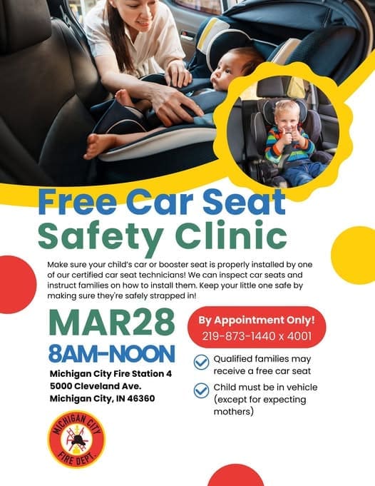 Free Car Seat Safety Clinic at the Michigan City Fire Station on 3/28