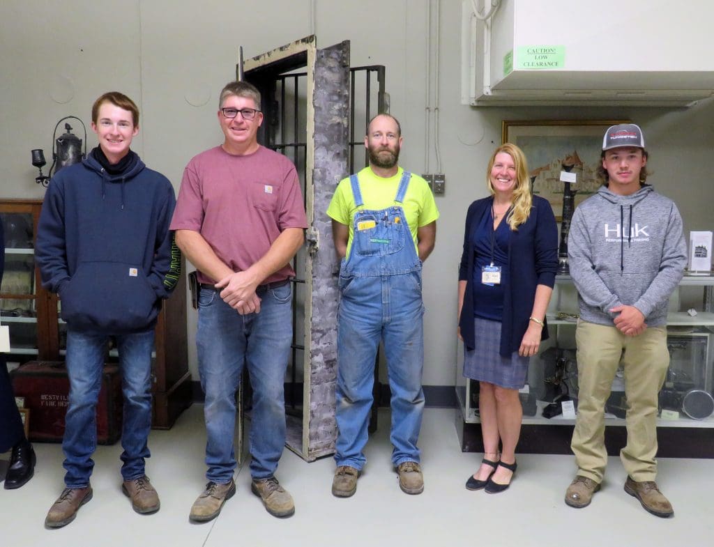 The La Porte County Historical Society is pleased to announce its newest acquisition – the jail door from the Michigan City Superior Courthouse. The jail cell at the courthouse was a holding cell where prisoners on trial were held before and after their daily trial proceedings. The Michigan City Superior Courthouse is located at 300 Washington Street in Michigan City, and was built in 1909.La Porte County Commissioner Richard Mrozinski was instrumental in acquiring the door on behalf of the Museum. The jail door was in an area of the courthouse that is currently undergoing renovation. The physical transfer of the door was accomplished by Marquiss Electric, Inc. of Michigan City. Marquiss Electric is owned by Andy Skwiat.The Michigan City Superior Courthouse jail door joins a jail door from the La Porte County jail at the Museum, and both are intriguing complements to the police and fire department exhibits. Both doors are similar in design, and, so, are likely from the same time period – the late 1800s to the early 1900s.The Michigan City Superior Courthouse jail door consists of two doors, the barred door and a steel door with one peep hole that, when shut, closed off the interior of the cell to sound and light outside the cell.The La Porte County Jail door is from the third county jail, built in 1857, a brick structure erected on State Street in La Porte next to Shafer’s Laundry (razed to make way for the County Complex). The third county jail was razed after the construction of the fourth jail in 1907. Our current La Porte County Jail is the fifth jail.The La Porte County Historical Society Museum is located at 2405 Indiana Avenue in La Porte, and is currently open reduced hours, from 10:00 a.m. to 2:00 p.m. Tuesday through Saturday. Masks are required of all visitors. Please contact the Museum at 219-324-6767 of info@laportecountyhistory.org with any ques
