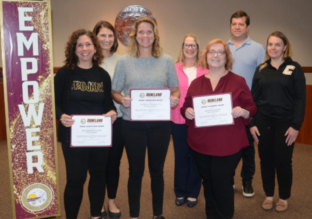 Pictured: Duneland elementary school counselors, left to right: Heather Kellogg, Lindsay Moskalick, and Michelle Bruss (Lindsay Stainko and Sue Harmison absent from photo)