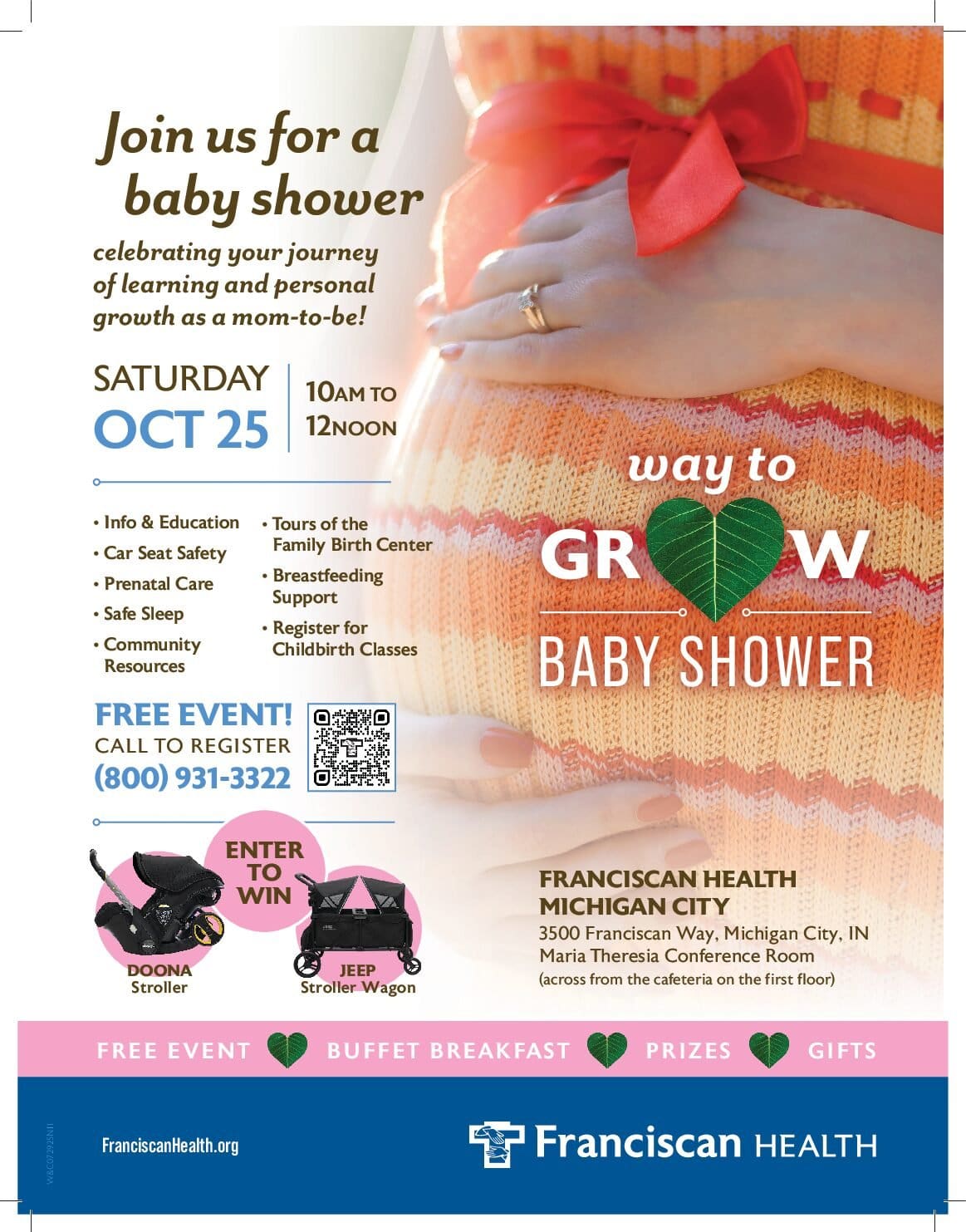 Franciscan Health is having a “Baby Shower” on Saturday October 25th in Michigan City. Join us for a