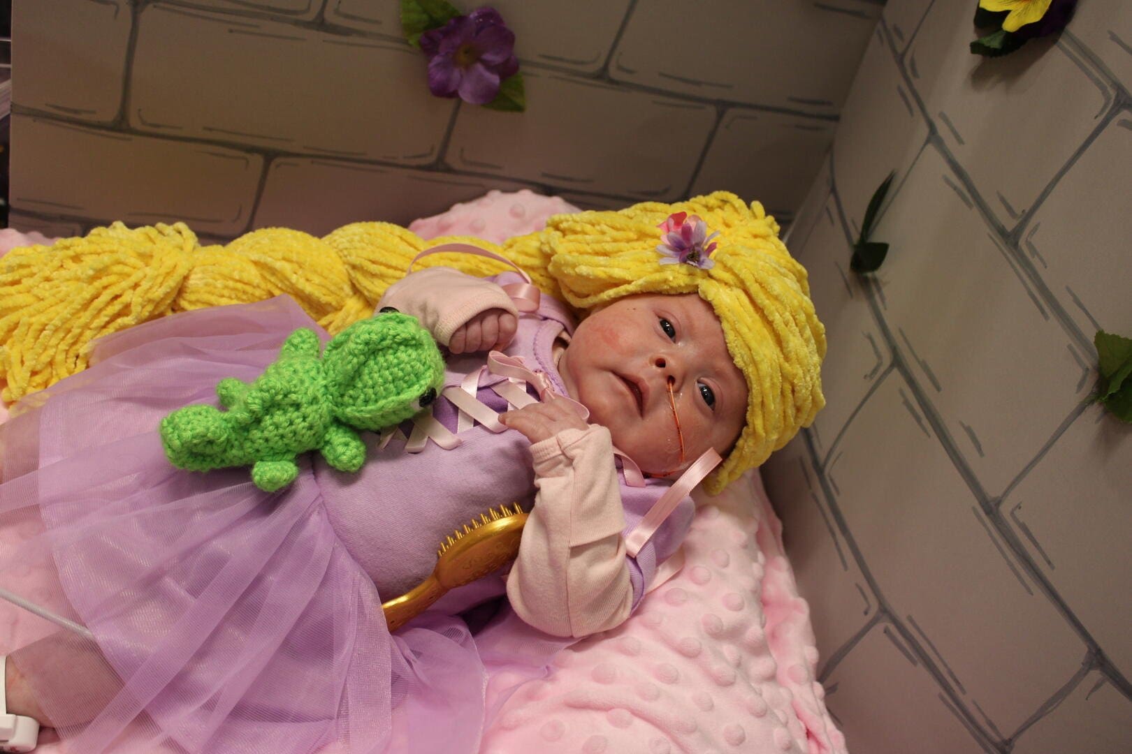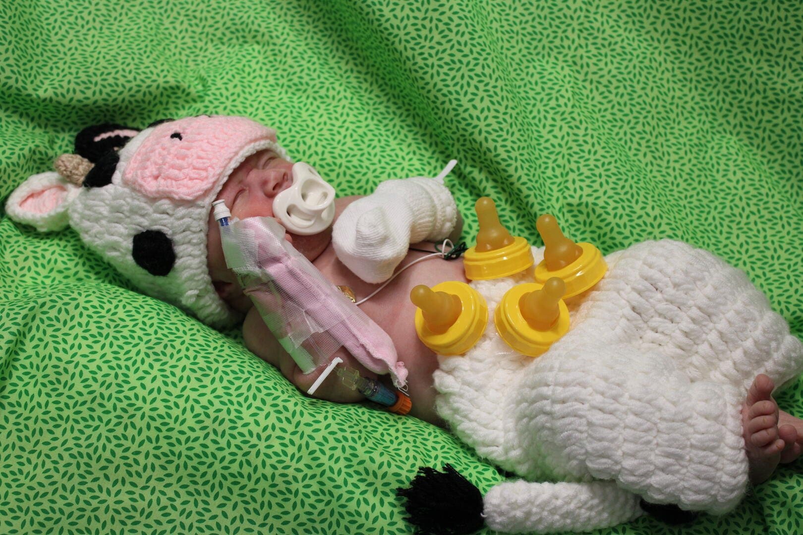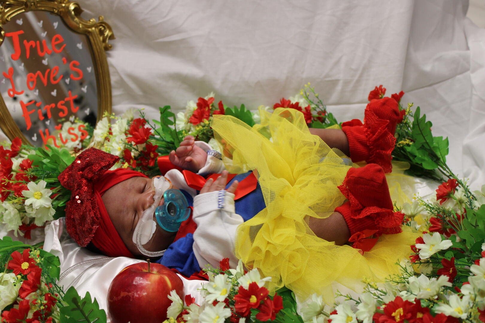 Infants in the NICU at Franciscan Health Crown Point dressed up as a cow, Snow White, a fairy, Captain America, Rapunzel and a boxer. The newborns in the Family Birth Center at Dyer posed for “Our Little Boo” photos in a cauldron.