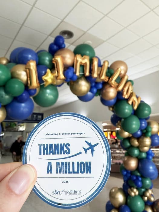 South Bend International Airport (SBN) set an all-time annual passenger record in 2025 when 1,111,002 ticketed airline passengers passed through its gates. The previous record was in 1997 with 991,457 passengers.