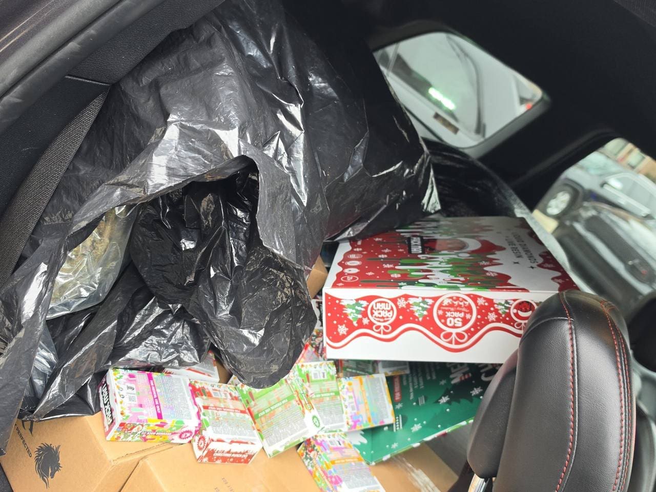 The suspect’s SUV was fully loaded with packages of marijuana and THC products.