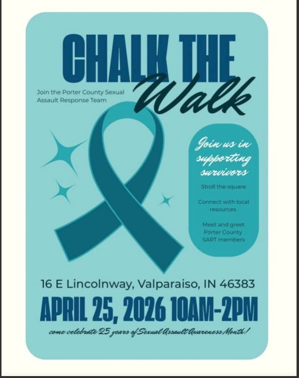 The Porter County Sexual Assault Response Team will host an event called, “Chalk the Walk” on April 25.