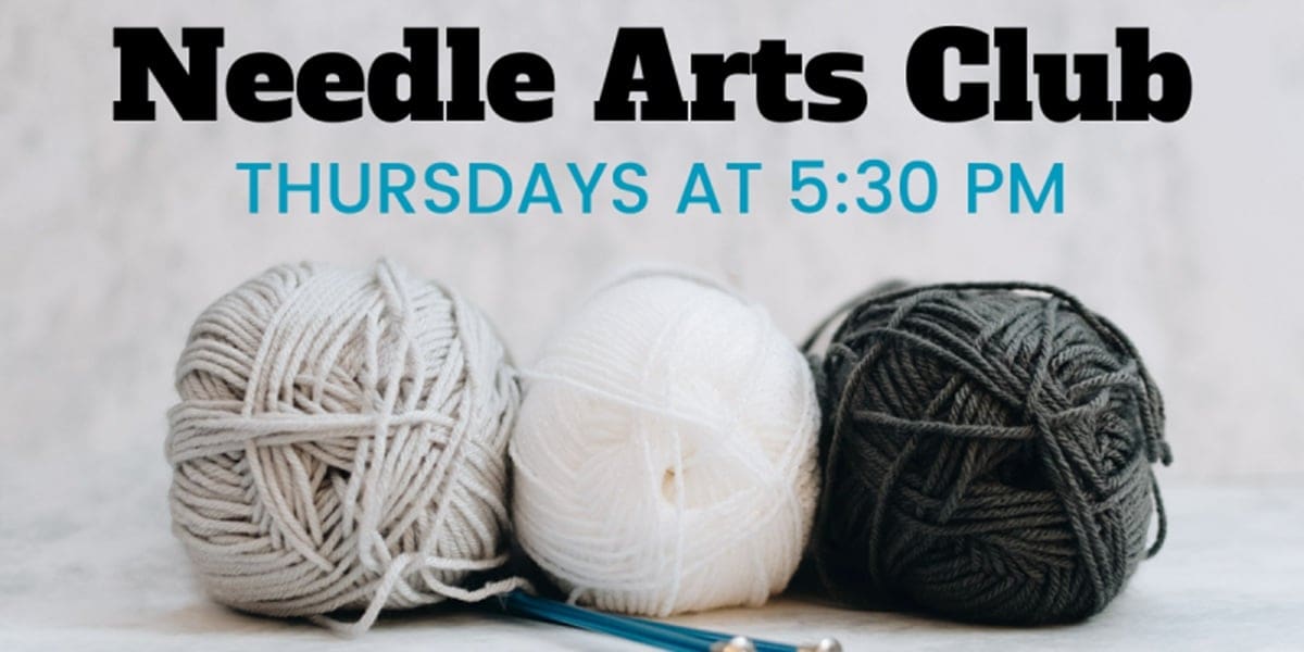 Needle Arts Club meets on Thursdays in September, starting at 5:30 pm. Hello crafters! Join fellow artists for community building through the needle art of your choice. A variety of crafts are included. All skill levels and ages are welcome, and the sharing of skills is encouraged.