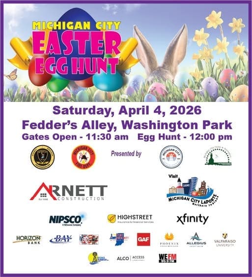 Celebrate spring at the Michigan City Easter Egg Hunt on April 4th, 2026, a free, family-friendly tradition that’s a favorite for all ages. With more than 20,000 candy-filled eggs hidden throughout the hunt area, plus special golden ticket prizes and festive surprises, kids will have plenty to discover and enjoy.