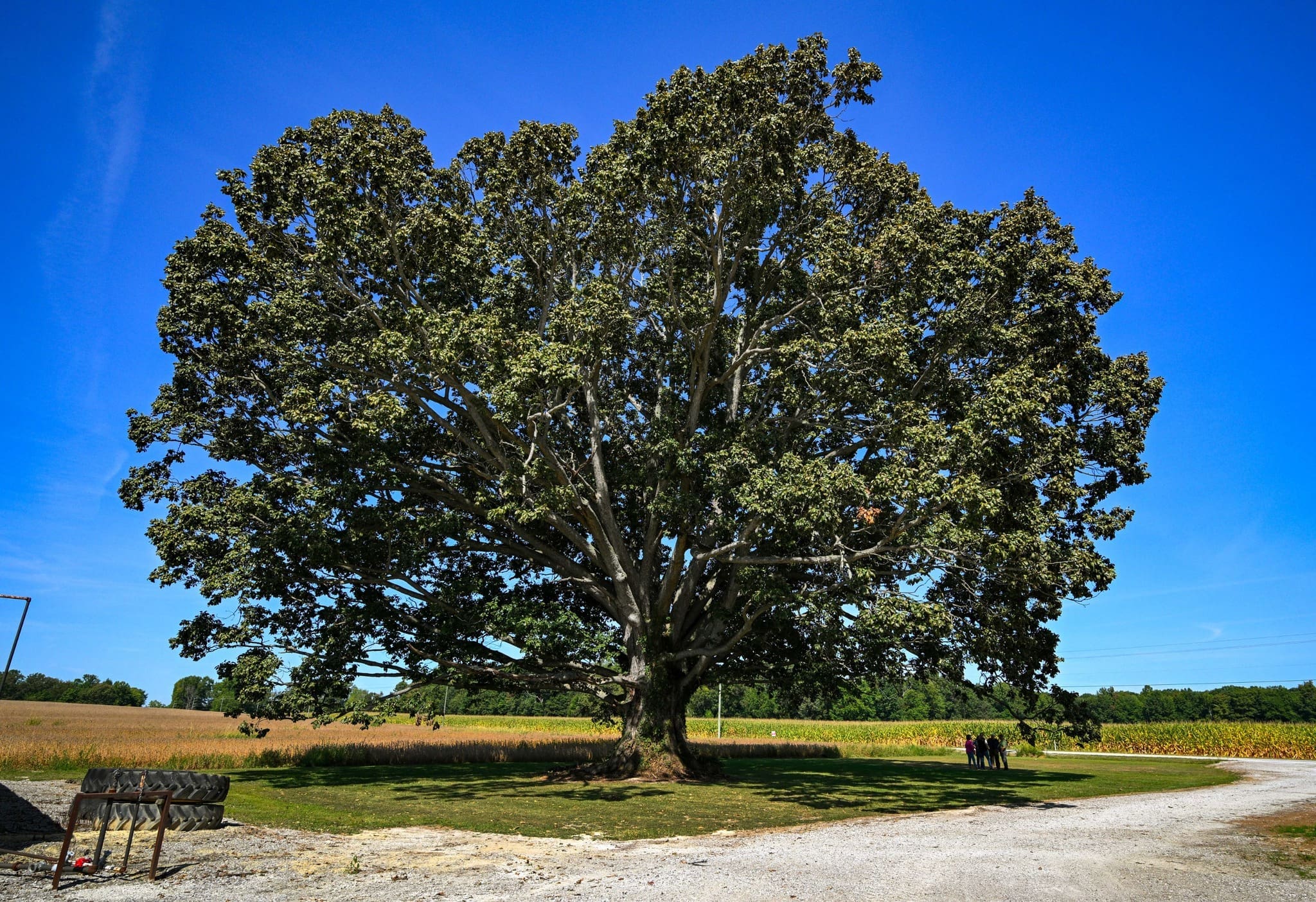 A swamp chestnut oak tree in Jennings County has been recognized as the largest of the species in the country by the National Champion Tree program, with a height of 95 feet, a circumference of 318 inches, and a canopy spread of 118 feet. The record swamp chestnut oak is on the family farm owned by Richard and Kris Schepman outside of Crothersville. Today, Governor Mike Braun and Indiana Department of Natural Resources (DNR) leaders presented the Schepmans with a certificate recognizing their family’s stewardship of this impressive tree. “Over the last century, Indiana’s forested land has substantially grown as