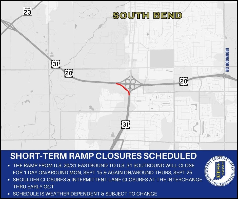 Ramp Closure: U.S. 20/31 Bypass and U.S. 31 in St. Joseph County